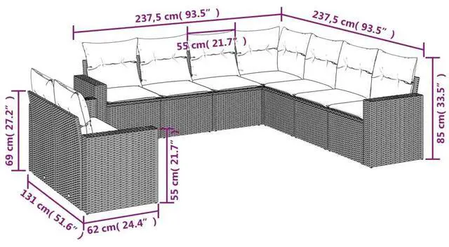 This 9 Piece Garden Sofa Set blends style and function perfectly, showcasing a modern look that's spot-on for any outdoor area. Made with top-notch poly rattan and sturdy powder-coated steel, this set is built to provide loads of seating while making your garden, patio, or terrace look ace.