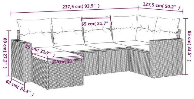 This 6-Piece Garden Sofa Set with Cushions is a stylish and flexible pick for any outdoor or indoor area. Made from poly rattan and powder-coated steel, it blends durability with modern looks, enhancing your patio, backyard, or balcony while offering comfy seating for get-togethers or quiet relaxation.