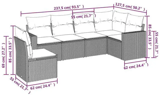This 6 Piece Garden Sofa Set is all about stylish outdoor lounging. Its built with functionality and comfort in mind. Made from tough PE Rattan and powder-coated steel, the set has a modern vibe while offering a cozy spot for family and friends to chill and enjoy the sunshine in your garden or terrace.