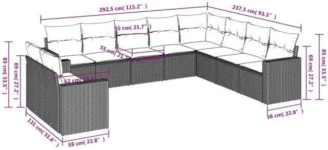 Delivery Contains: 1 x Corner seat with storage function and waterproof bag, 5 x Center seats with storage function and waterproof bag, 4 x Arm sofas with storage function and waterproof bag, 11 x Back cushions, 10 x Seat cushions with removable and washable covers