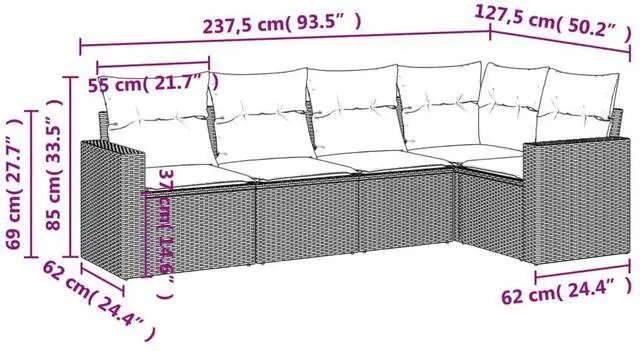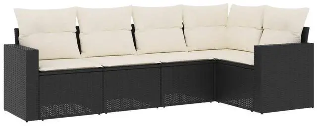 This 5-piece modular outdoor sofa set is made for those who want both style and functionality in their outdoor areas. With a smart mix of black poly rattan and cream cushions, it brings a fresh vibe to patios, balconies, and gardens. Each piece fits in seamlessly with your outdoor decor while giving you a comfy lounging space, perfect for relaxing or socializing.