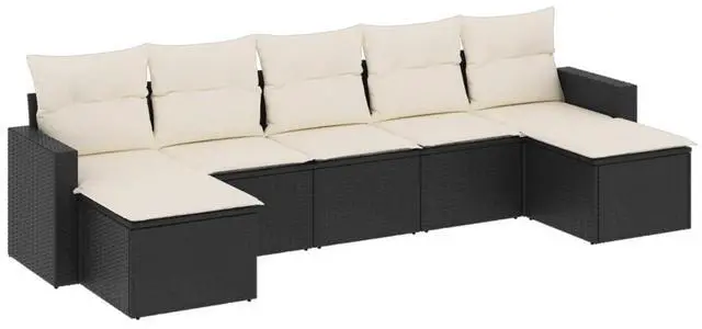 This 7-piece outdoor sofa set is what you need for comfort and style outdoors. With its modern vibe, it fits in beautifully on patios, in gardens, or on balconies, turning your outdoor space into a comfy haven. The chic black and cream colors add a stylish touch, making any setting more inviting.