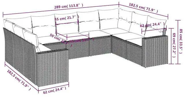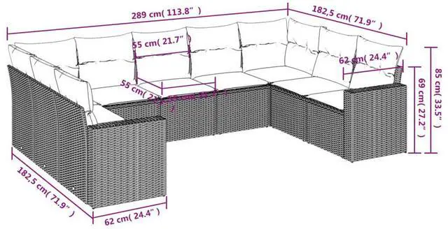 This 9 Piece Modular Garden Sofa Set is a stylish and comfy seating choice for your garden or patio. The trendy synthetic rattan finish not only looks good but also invites friends and family to kick back on the soft cushions.