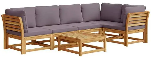This 6-Piece Modular Garden Lounge Set is built to jazz up your outdoor living area, giving you style and comfort for any get-together. With a sleek, modern look featuring dark grey upholstery and a solid acacia wood frame, this lounge set not only makes your garden or balcony look good but also offers the flexibility you need for relaxing or having guests over.