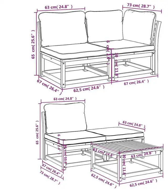 Back cushion dimensions (L): 25.6" x 15.7" x 2.4" (L x W x T)