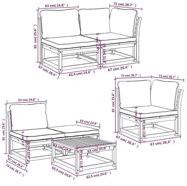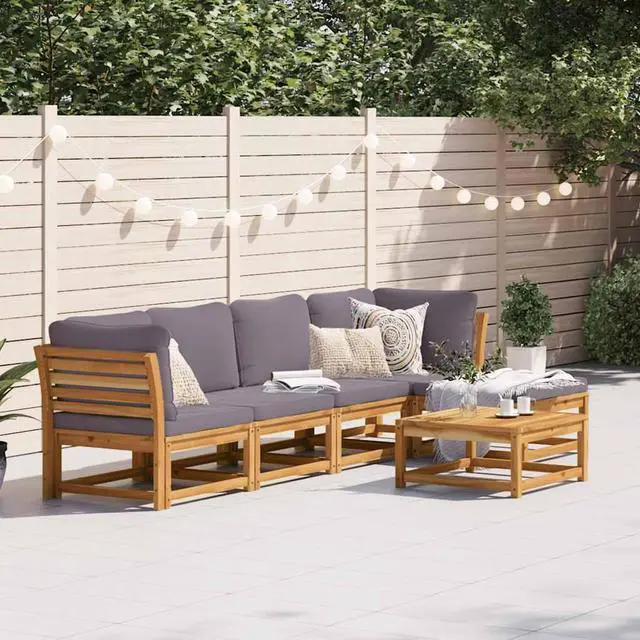 This 6-Piece Modular Garden Lounge Set is smartly designed for both comfort and practicality, making it a stellar addition to your outdoor spaces. Made from quality solid acacia wood and topped with comfy, weather-resistant cushions, this set not only offers plush seating for relaxation and socializing but also boosts the look of any balcony or patio with its modern vibe.
