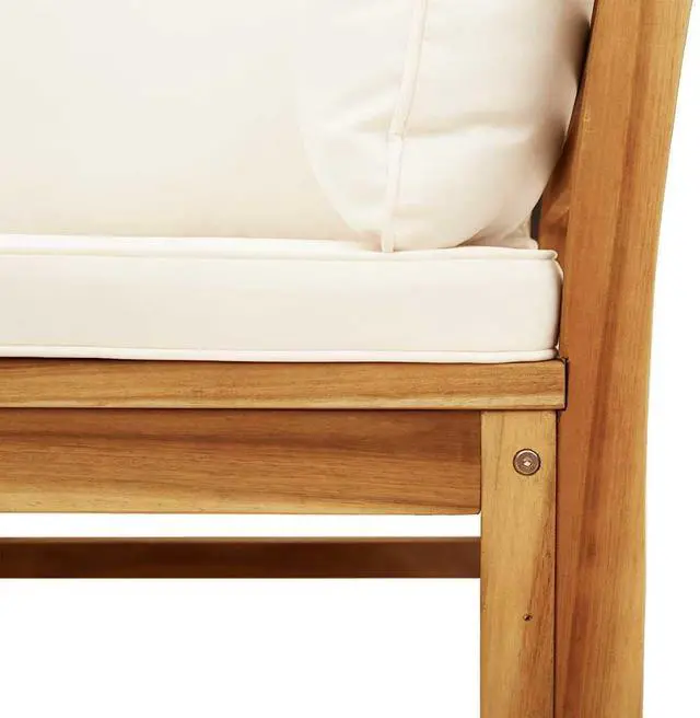 This Outdoor Sofa set is a fabulous addition to any patio or garden space, designed to fit three people comfortably. With a lovely blend of cream white and natural wood colors, this lounge set is not only inviting but also boosts the look of your outdoor areagreat for relaxing or entertaining guests in style.