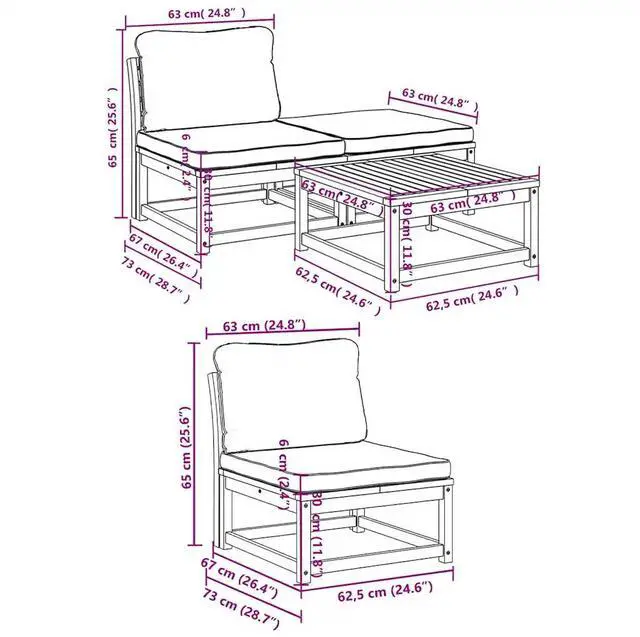 Back cushion dimensions: 25.6" x 15.7" x 2.4" (L x W x T)
