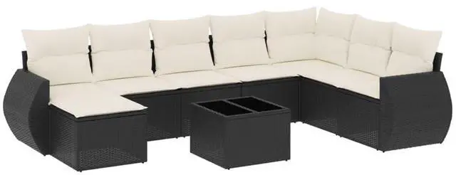 This 9-piece modular garden sofa set is made for outdoor fun, giving you a stylish and comfy lounging area perfect for family get-togethers or relaxing afternoons. Its modern vibe features a black poly rattan finish with cream cushions, setting an inviting tone for any patio or garden.
