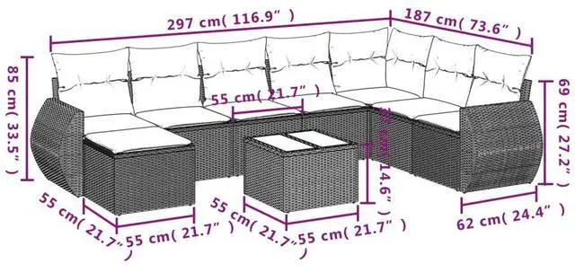 Spacious Seating for Everyone With room for up to 9 people, this set is perfect for big gatherings or laid-back hangouts with family and friends. Seats are generously sized for comfort, inviting everyone to kick back and relax.