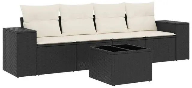This 5 Piece Garden Sofa Set is a stylish and practical choice for indoors or out. Its clean lines and chic black and cream colors create a cool lounge spot perfect for relaxing, making it ideal for gatherings on your balcony or in the living room.