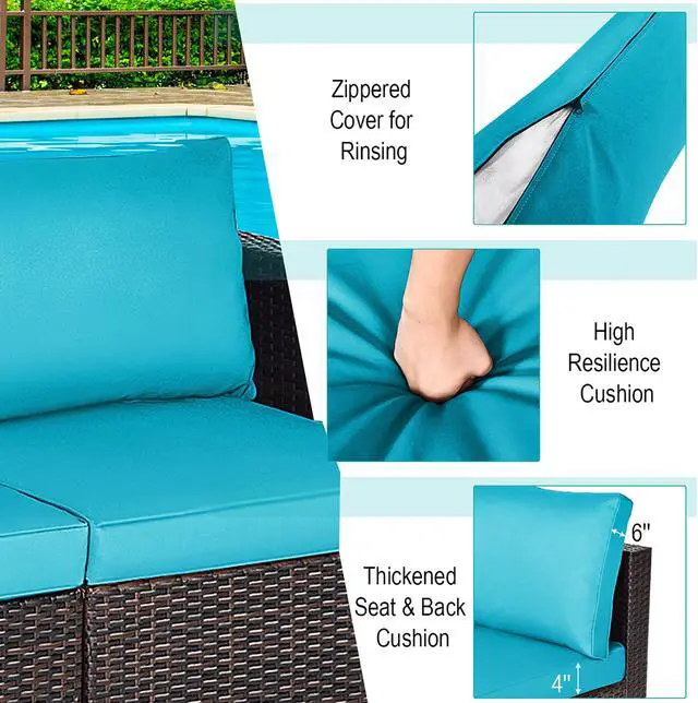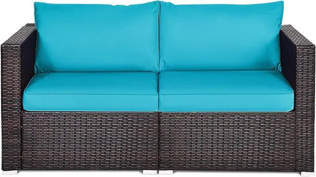 Costway 2PCS Patio Rattan Corner Sofa Sectional Furniture Blue Cushion
