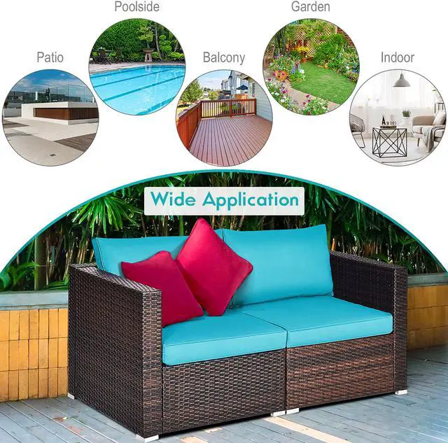 • Sturdy & Durable Frame: Crafted with weather-resistant PE rattan and powder-coated steel, the armless chairs are sturdy to ensure long-term outdoor usage. And the frame of sofa set is stable and won't deform with large load capacity.