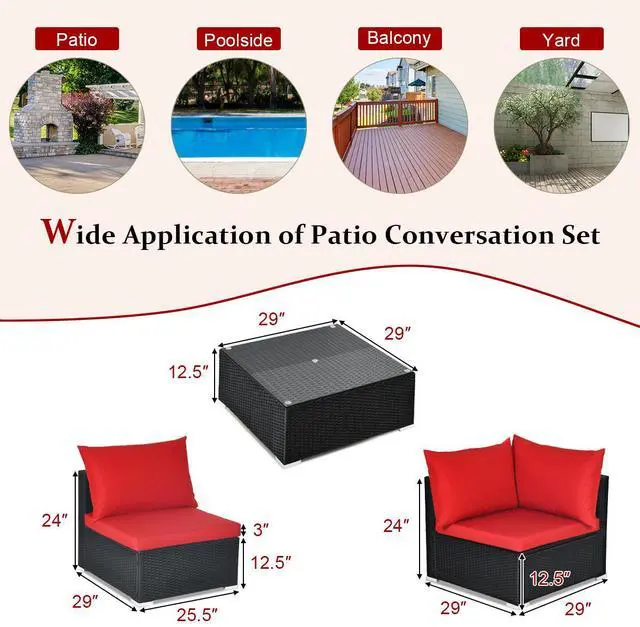 Costway 7PCS Patio Wicker Sofa Set Sectional Conversation Furniture Set Garden Red