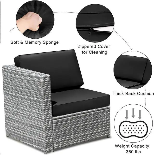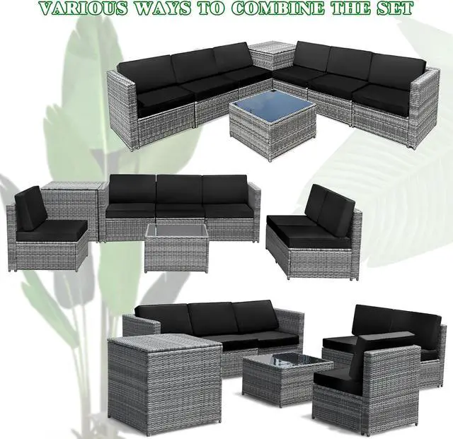 Rattan design is stylish to be a great decoration in your garden or yard. At the same time, it's easy to clean and need no special maintenance. Steel frame is sturdy and sturdy enough to have 2240 lbs load-bearing capacity in total. This sofa set comes with a storage box and a coffee table to store and place items. The matching cushions are soft and comfortable. With detachable covers, it's convenient to clean. Besides, sofas can be combined in different ways according to your idea.