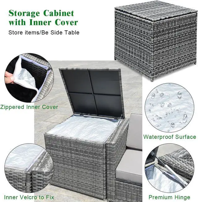Including 6 sofas, 1 storage box, 1 coffee table, 6 seat cushions and 6 back cushions