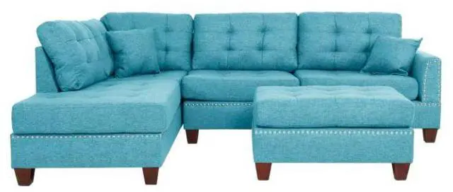 Trimmed with nickel finished studs and the seating is of pure, plush comfort. Covered in a smooth but functional fabric. Color: Blue Materials Polyfiber, Polywood base panel with Solid Pine Frame and Wood Legs