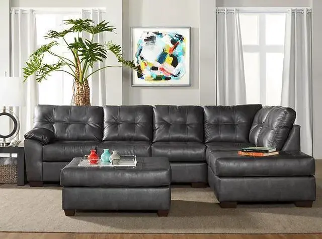 Reine 2 Piece Living room Sectional Sofa Set in Grey Polyester