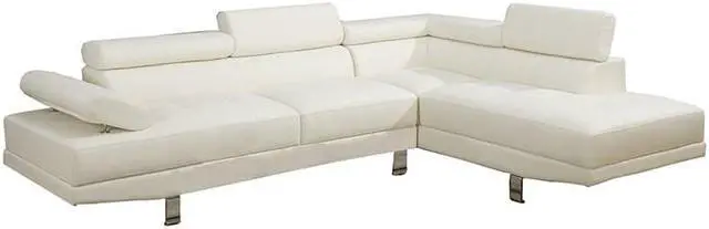 Modern design full-length sectional. Features a unit covered white faux leather. Coffee table shown in the image not included. Materials: Faux Leather, Pine Wood and Particle Board with Metal Legs.