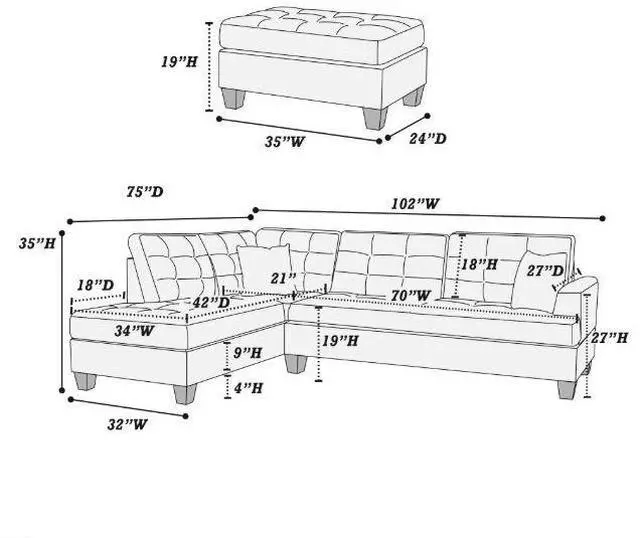 3-piece sectional features units upholstered in rich hued faux leather and accent tufting with light stitching. Contemporary decor, indulge with a sectional that suits your desires. It also includes a matching cocktail ottoman.