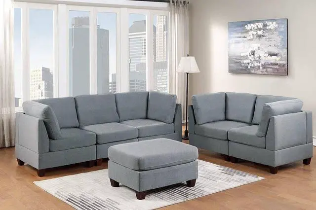 Stresa Grey 6-Piece Modular Sofa, Loveseat with Ottoman in Linen-Like Fabric