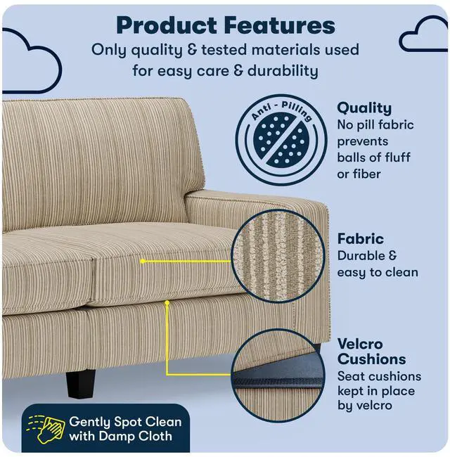 Featuring square arms and tailored cushions, the Serta Palisades Sofa effortlessly fits into both traditional family homes and stylish, modern apartments. The versatile fabric upholstery makes it easy to mix and match the sofa with other pieces of furniture, throw pillows, and existing decor to create a cohesive look.