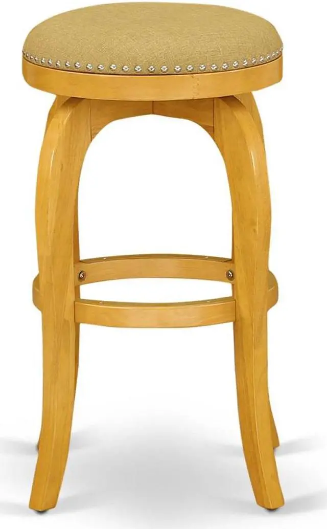 EAST WEST FURNITURE COUNTER HEIGHT BARSTOOLThis solid wood counter height barstool will make a beautiful declaration in your house when planning to obtain a stylish layout Elegant countertop height stool is finished in oak Well-designed 30-inch counter-top height bar stool is finished in oak having a natural Vegas gold finish upholstery seat and high-density foam. These excellent backless stool seats have a diameter of 16.5 inches. The backless barstool doesnt just look impeccable in the dining area but will be ideal in the pool or game room The 360-degree swivel seat enables you to swing around effortlessly The tough solid wood frame is stabilized Includes a footrest safeguarded with a steel kick plate that ensures the longevity and sturdiness of this bar stool The floor glides protect your floors and ensure smooth gliding.