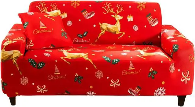 Anyhouz Sofa Cover Red 2 Seater Christmas Reindeer Design Non Slip Stretchable Slipcover