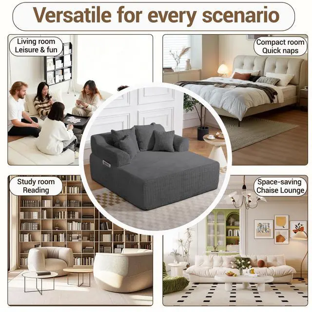 Transform your space into a cozy retreat with the 58" Chaise Lounge Chair Indoora versatile piece that balances functionality, softness, and style, making it far more than just a standard living room chair. Whether you're furnishing a busy family room, a quiet reading nook, or a compact apartment, this oversized corduroy piece adapts to how you live, turning ordinary moments into comfortable escapes.