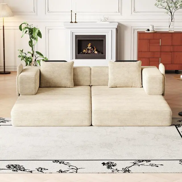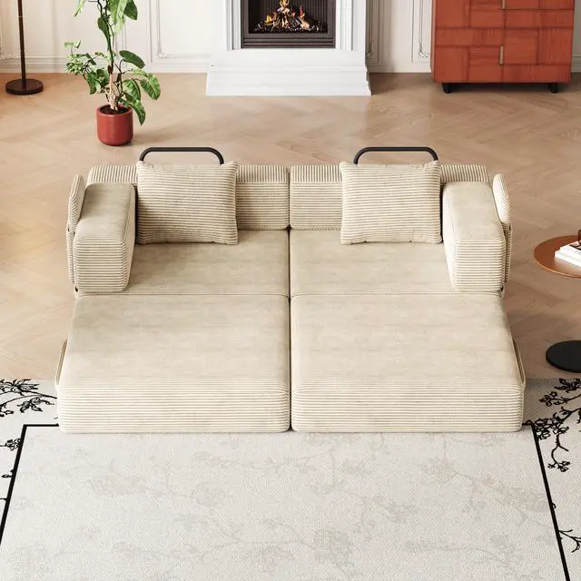 Space-saving pull-out sofa: Designed with space efficiency in mind, this pull-out sofa is compact when folded and spacious and comfortable when unfolded, making it an ideal choice for entertaining guests or everyday relaxation without compromising on comfort.