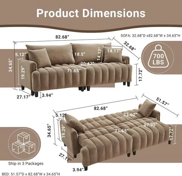 Sturdy& Durable Construction Crafted with a strong wooden frame and solid wood legs, this futon sofa bed can support up to 700 lbs with ease. The futon sofa bed couch is designed to withstand wear and tear to offer a long-lasting seating option for any living space.