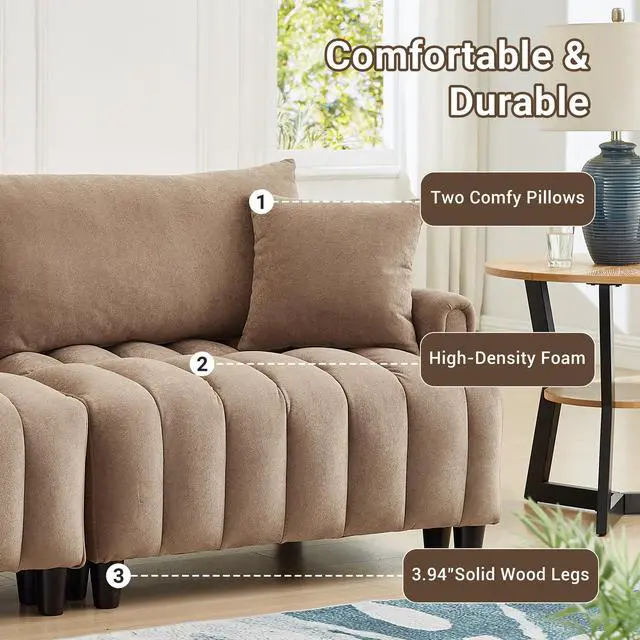 • 83'' Futon Sofa Bed, Polyester Fabric Comfy Futon Couch Bed with 2 Square Pillows, Convertible Sleeper Sofa with Adjustable Backrest, Modern Loveseat Sleeper for Living Room, Brown