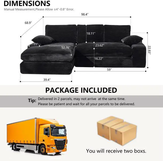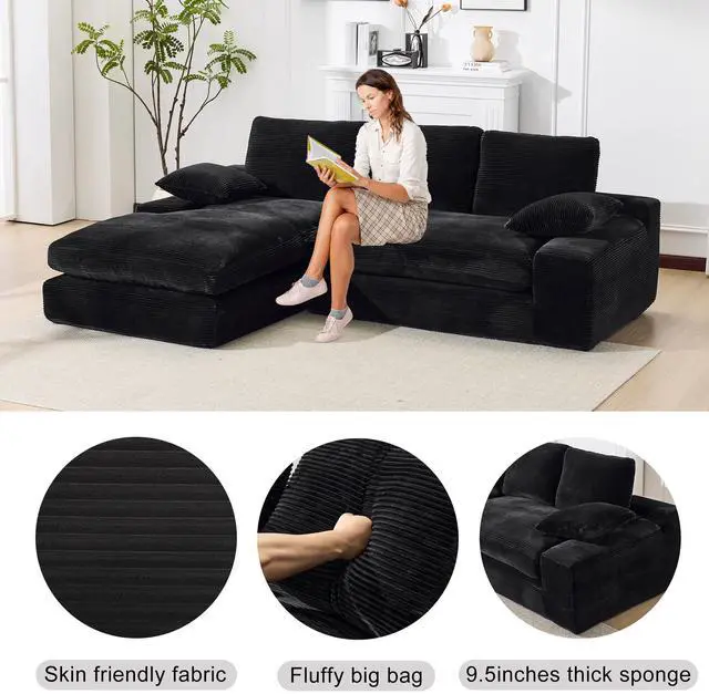Comfortable sectional sofa: The 9.5 inch thick cushions are made of high resilience foam, they are comfortable and supportive.