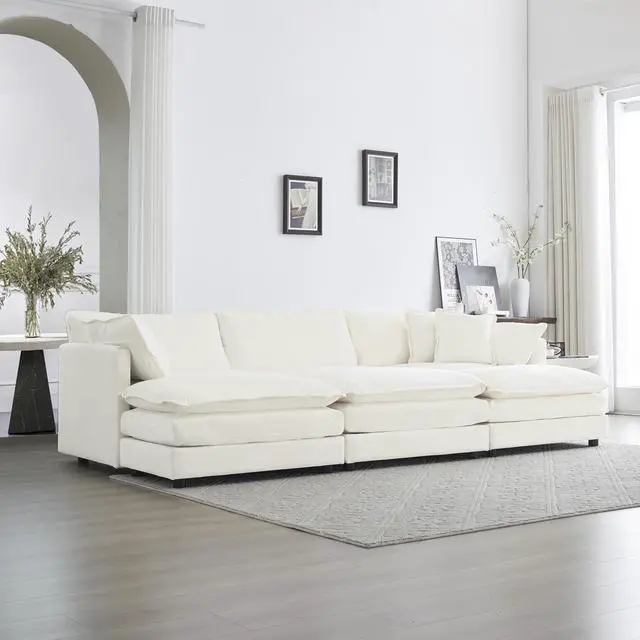 Premium Material - Sturdy solid wood frame, high end breathable Chenille fabric, filled with high quality sponge, making this modular sectional sofa beautiful and comfort, it can be perfectly support your body shape and give you relaxation feelings after a big day.
