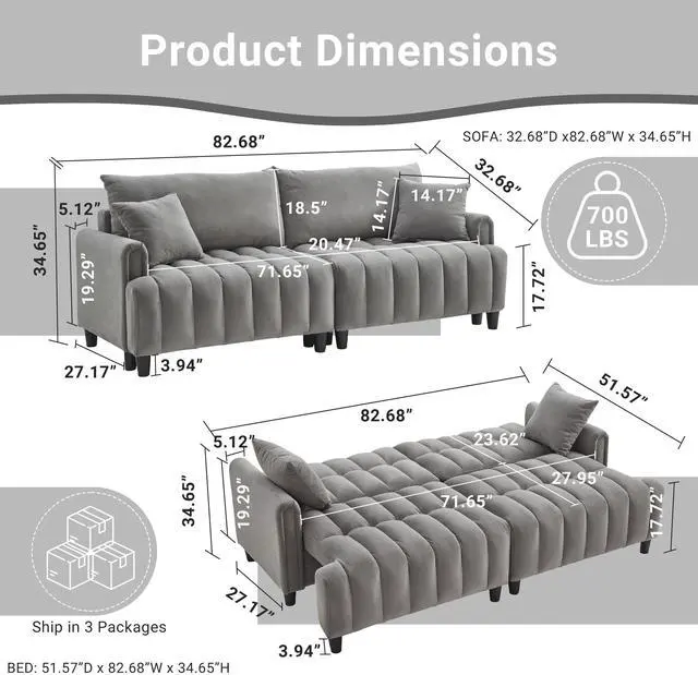 2 Storage SpaceSofa sleeper has 2 hidden storage that can fit blankets, pillows, and more, which Maximize your living space and stay it tidy and organized.