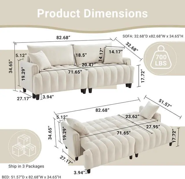 2 Storage SpaceSofa sleeper has 2 hidden storage that can fit blankets, pillows, and more, which Maximize your living space and stay it tidy and organized.