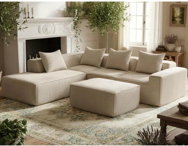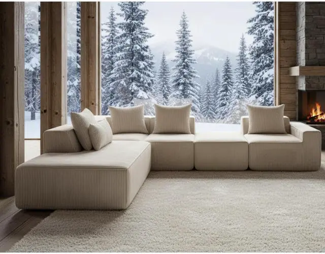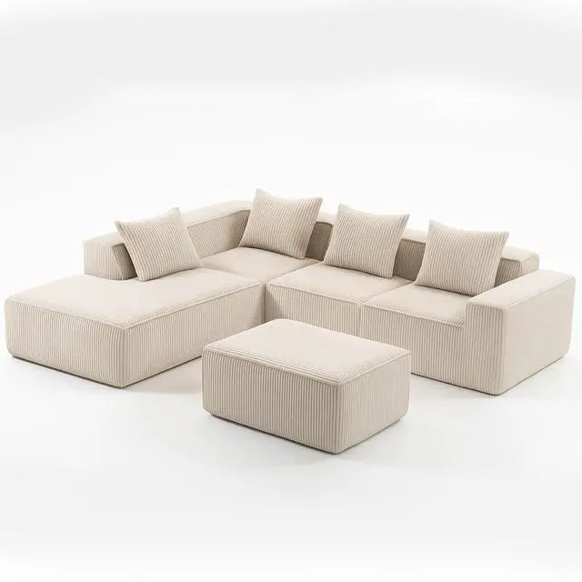 Luxurious Corduroy Fabric - Upholstered in soft yet durable corduroy fabric, this lounge sofa combines a stylish look with a plush feel. The vertical ribbed texture of the corduroy adds a sophisticated, timeless touch while providing a tactile, cozy surface that is both soft to the touch and easy to maintain.
