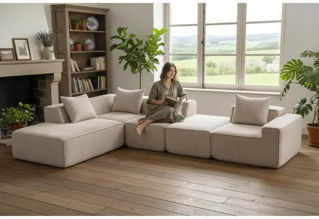 Flexible Modular Configuration - This sofa features a fully modular structure, allowing you to rearrange or reconfigure each section based on your space and preference. Whether you want an L-shape, Straight-line shape, or a sofa bed, this flexibility offers ultimate customization for any living room layout.