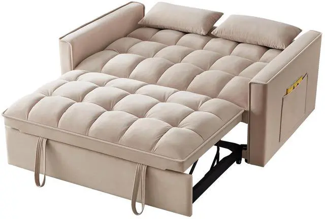 Material: Sofa Bed is wrapped in premium velvet fabric, High-density sponge makes the sofa very elastic, nice for rest and sleep. The frame maximum capacity up to 550lbs.