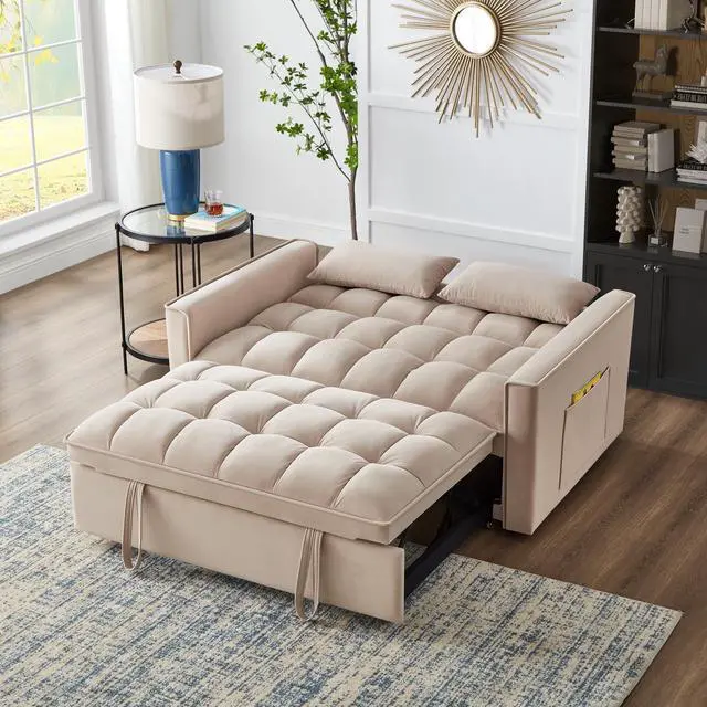 Multi-Functional Design: This four-in-one double pull-out sofa bed with dual armrests and built-in storage pockets offers versatility and convenience, serving as a comfortable seating option, a cozy sleeping space, armrests for relaxation, and storage for keeping essentials organized.