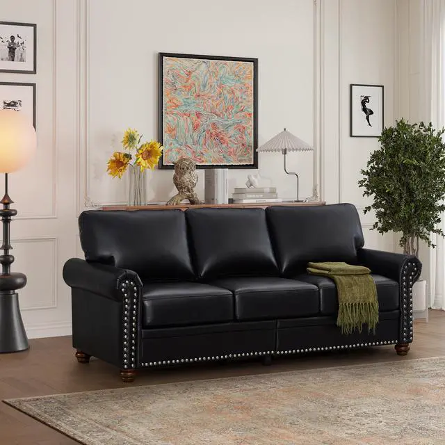HIGH QUALITY MATERIAL: With solid wood legs, this sofa upholstery comprises of PU with high density elastic sponges.