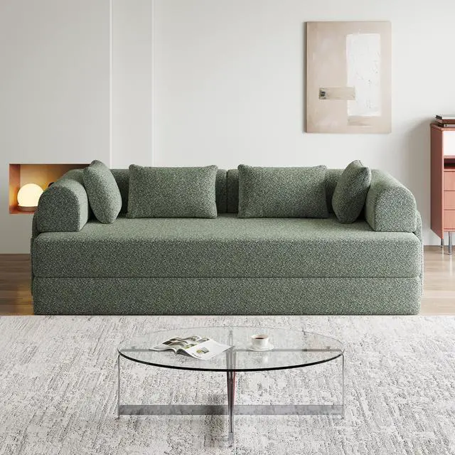 Premium Comfort: Upholstered in soft, breathable chenille fabric, this convertible sofa bed features high-density foam that effectively alleviates pressure while providing robust support. The accompanying 4 pillows enhance your lounging experience, ensuring relaxation like never before