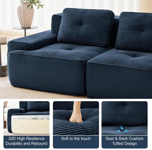 Premium Corduroy Fabric: Immerse yourself in our velvety-soft corduroy fabric, offering a delicate touch alongside exceptional durability and abrasion resistance. This understated luxury material combines softness with warmth, delivering lasting comfort. Its distinctive texture and subtle sheen not only make the sofa stand out but also provide gentle care throughout every season, elevating your tactile experience.