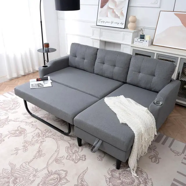 Built-in storage space is easy to use and spacious enough to store blankets, pillows, or something else.