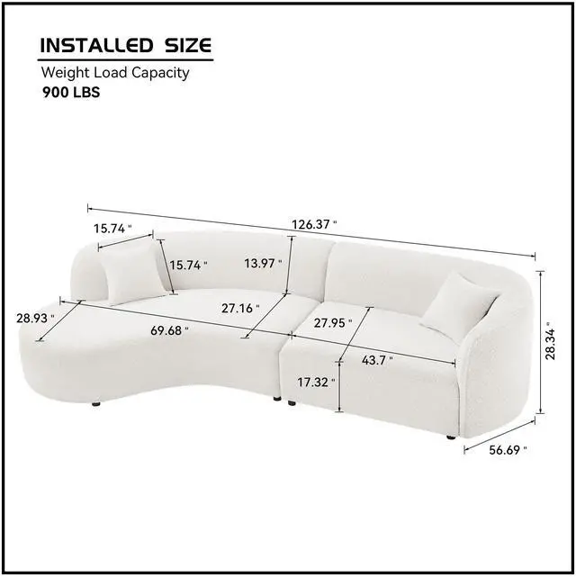 Upholstery Curved Sofa with Chaise 2-Piece Set