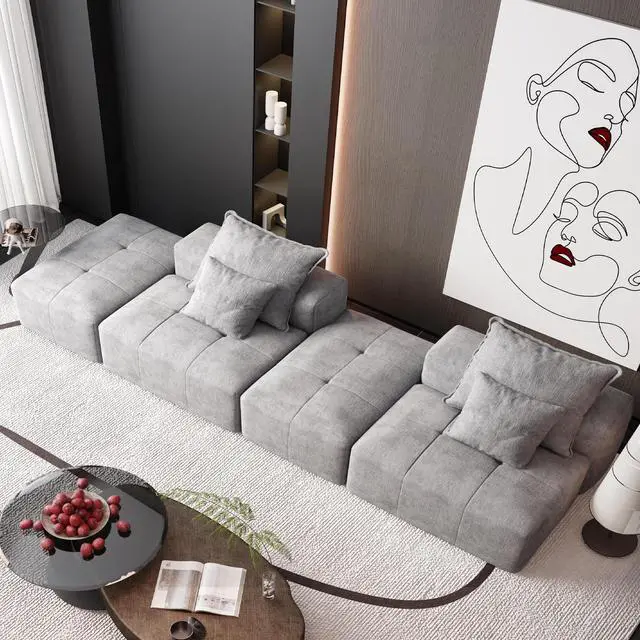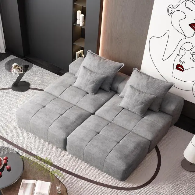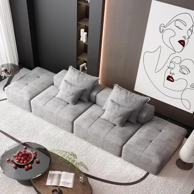 • Modern Oversized Modular Sectional Sofa with 2 Ottoman and 2 seat,Sparkling Chenille Fabric Soft Cushion Sofa with 4 Pillows,4 PCS DIY Combination Tufted Sofa,No Assembly Required,GREY