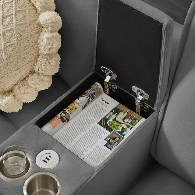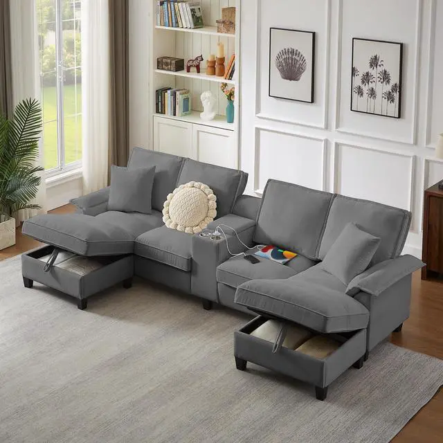 Chaise Footrest with Storage: The sofa is equipped with two chaise seating sections, which not only enhance comfort but also double as storage units. The storage drawers can be conveniently placed under the chaise and slide flexibly, providing additional space for organization.