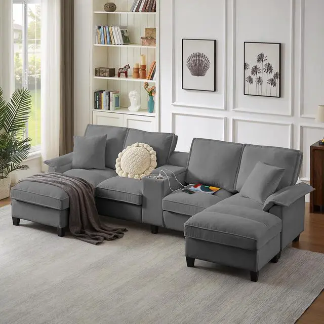 The U-shaped sofa is crafted from a sturdy hardwood frame, ensuring long-lasting durability and peace of mind. Its robust construction makes it an ideal choice for families with children and pets.