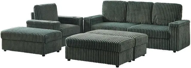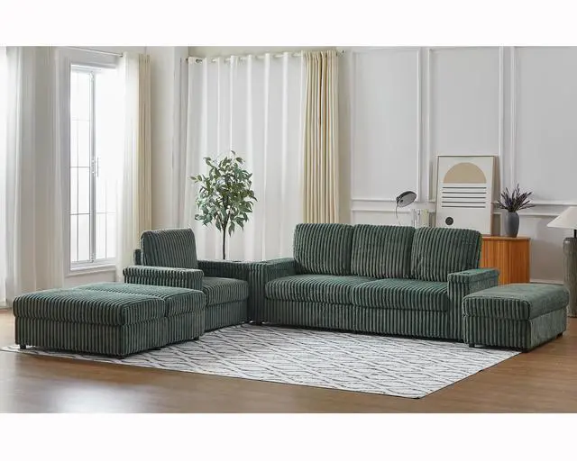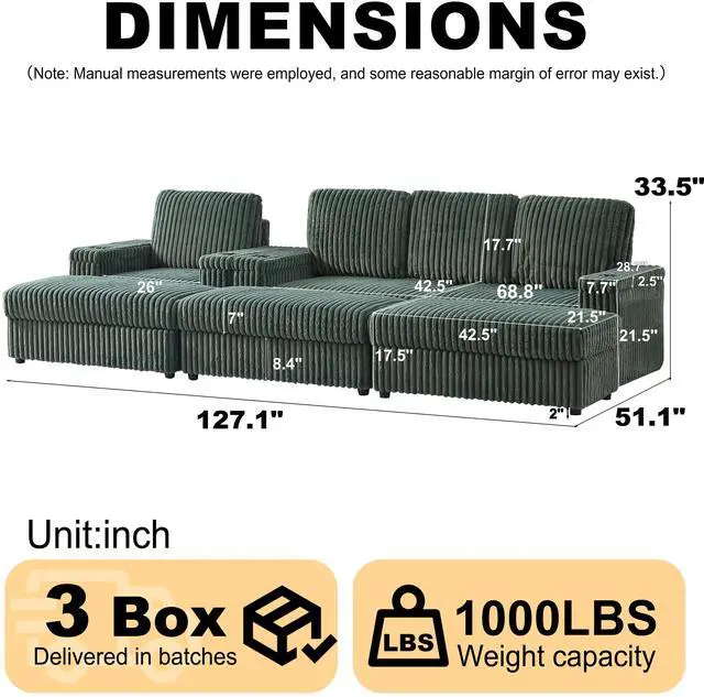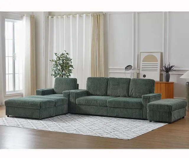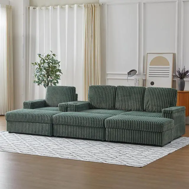 3-seater sofa Design: Plastic legs, armrest storage, armrest cup holders(Please note that the green three-seater currently features under-seat storage. )