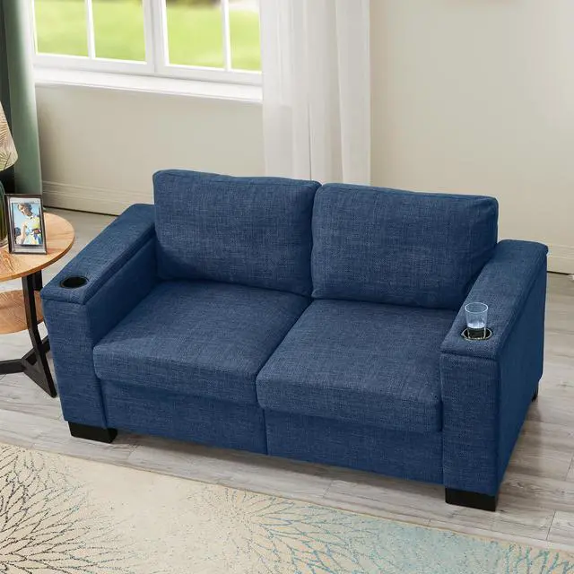 Multi function: The sofa's wide armrest design is equipped with a cup holder, and there is an additional storage space in the arm, which can store small items such as books and pillows. Under the seat cushion also has large storage space, making the sofa highly practical.